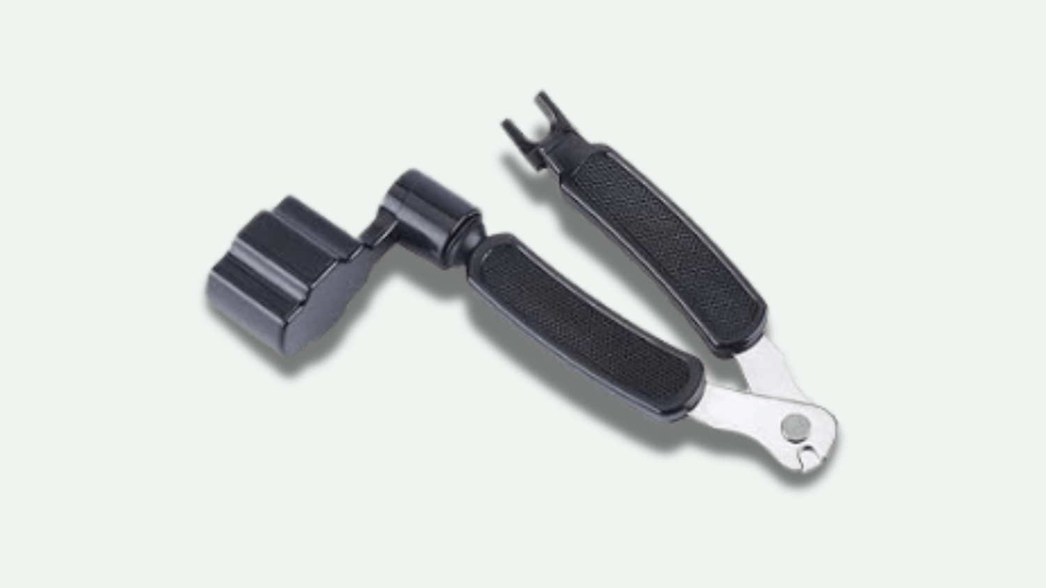 C'est un accessoire "3-en-1" indispensable : il sert de tourne-mécanique pour visser vos cordes en quelques secondes, de coupe-cordes pour une finition propre, et d'arrache-chevilles pour retirer les chevilles du chevalet sans rayer le bois de votre guitare.